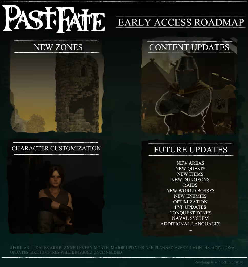 Past Fate is an open world MMORPG where the players freedom is the key element. You can explore the huge world and its continents and islands. Sail the treacherous seas to explore the world and recruit your own crew to assist you in naval combat. Hire and train mercenaries and soldiers to help your kingdom in the time of war. Find secrets, treasures and mysteries to aid you in your journey. Practice to become the crusader and smite down your enemies or find how to wield more darker powers to hunt your prey during the night. What is your fate?