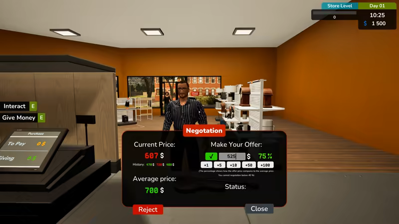PawnShop Simulator is a business simulation game where you buy and sell items through negotiation, clean and repair goods, rebuild and renovate your shops, and unlock licenses to trade over 180 unique products while growing from a small street pawn shop into another, larger modern urban pawn shop.