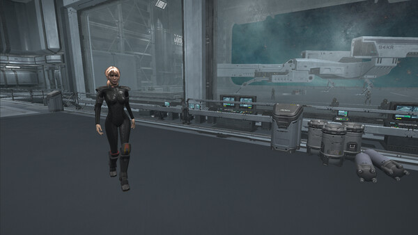 3D first-person exploration aboard a detailed deep-space vessel.